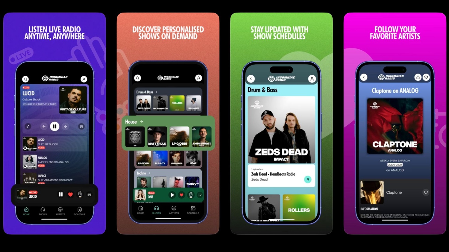 We oversee full-scope operations for Insomniac Radio, including programming, production, artist relations, scheduling, marketing, creative development, and live broadcast execution. Our team manages over 100 artist-led shows across four genre-specific channels and led the successful launch of their 24/7 standalone digital radio app.